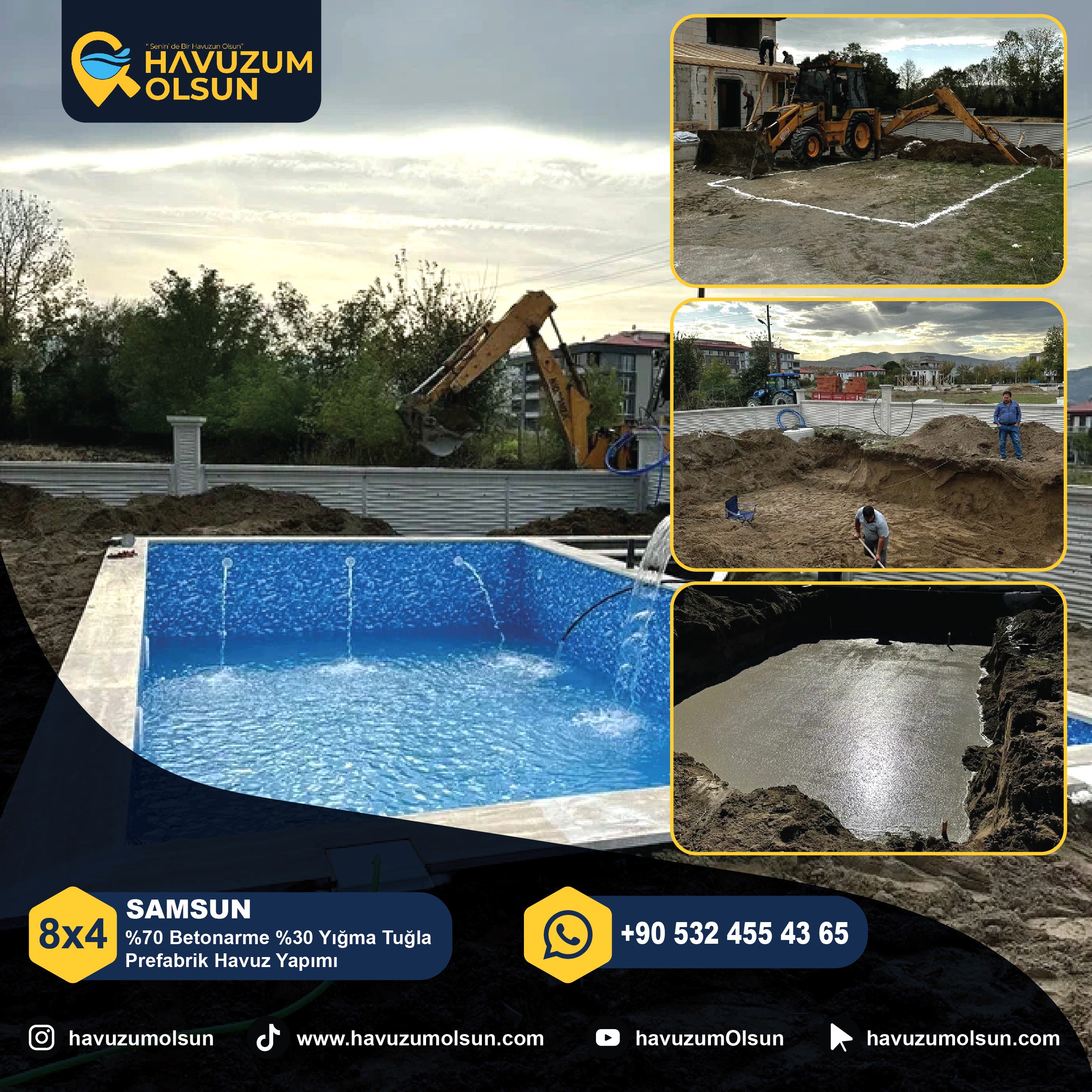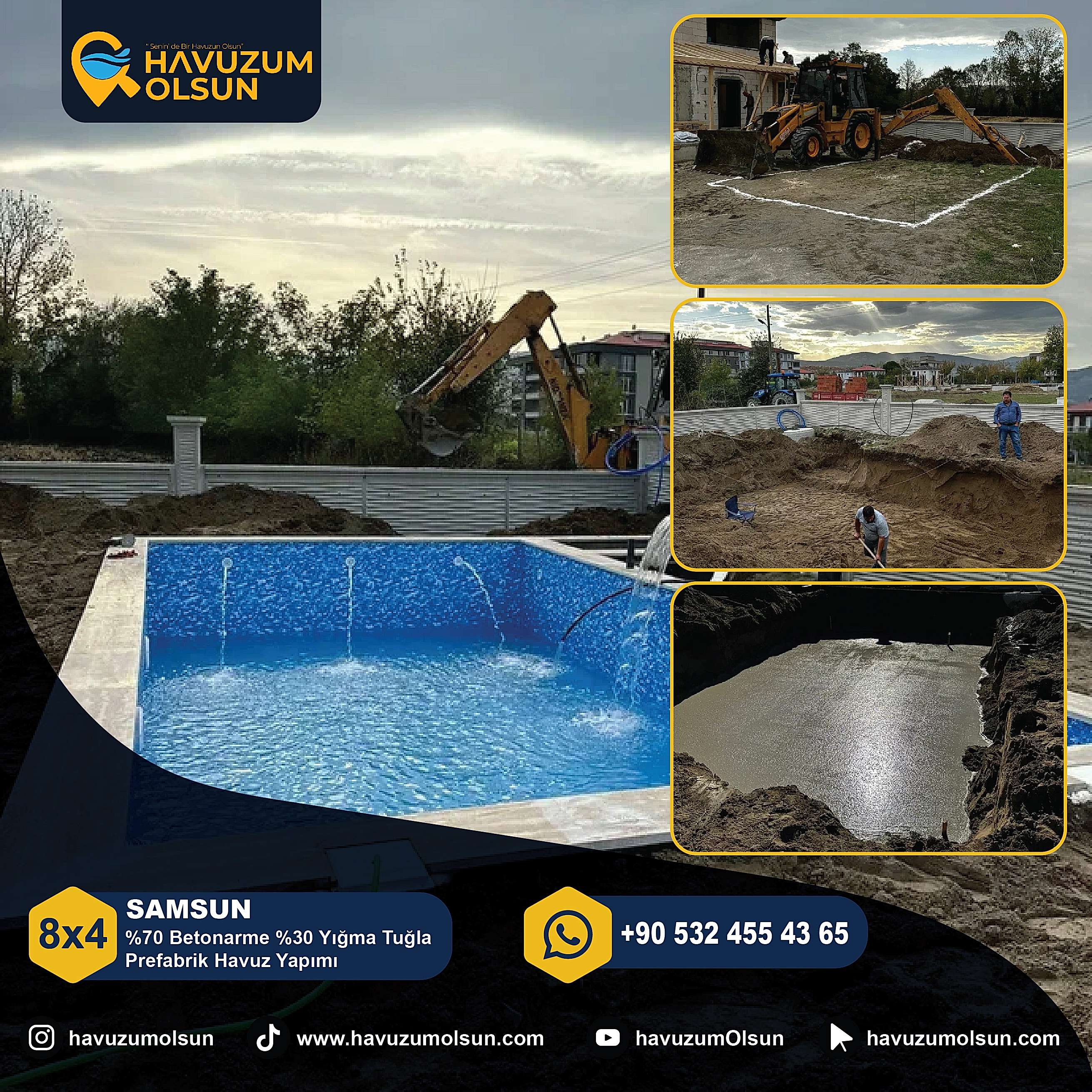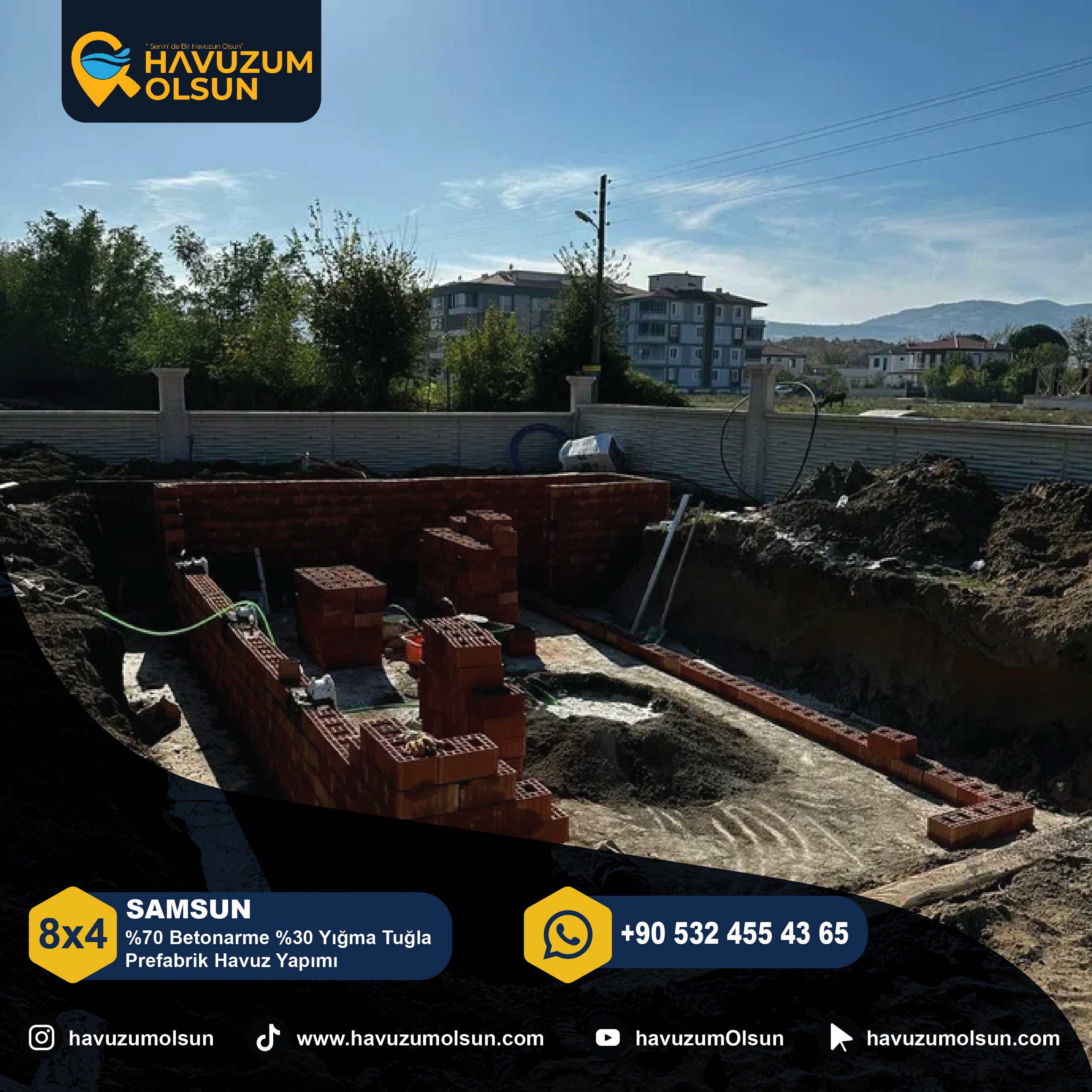 SAMSUN - 8X4 - %70 Betonarme %30 Yığma Tuğla Prefabrik Havuz Yapımı